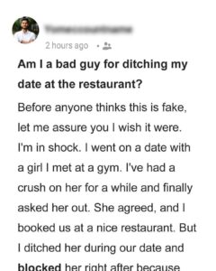 I Ditched A Woman I’ve Had A Crush On At The Restaurant On Our First Date